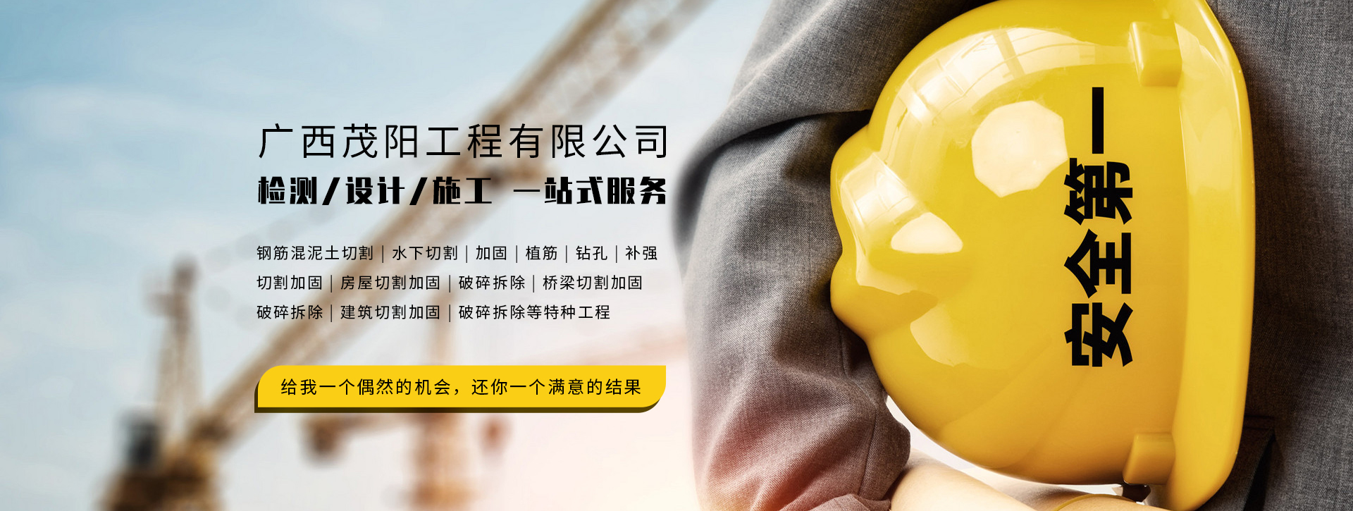 廣西茂陽建筑工程有限公司成立于2014年,發(fā)展至今現(xiàn)有員工153人,是由一批專業(yè)高效的技術(shù)團隊組成的工程公司,擁有注冊資本1000萬元,年施工能力1500萬元以上。目前有20臺繩鋸切割機,3臺馬路碟鋸機,8臺水鉆機,3臺風(fēng)炮機,2臺挖機,23臺鉆孔機。茂陽主要服務(wù)項目有鋼筋混泥土切割,水下切割、加固、植筋、鉆孔、補強、切割加固、房屋切割加固/破碎拆除、橋梁切割加固/破碎拆除、建筑切割加固/破碎拆除等特種工程......